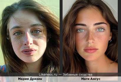 Актриса Мария Дризик вне всяких сомнений обладает модельным лицом и вызвала ряд ассоциаций с несколькими моделями. С аргентинкой Маги Ансус (Magui Ansuz)